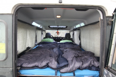 Wir hatten das Jahr davor schon einen Zwischenboden in das Fahrzeug eingezogen auf dem wir schlafen konnten. Unter dem Boden und auf dem Dach war unser Gepäck verstaut. Zum Kochen und sitzen hatten wir ein Heckzelt gekauft.